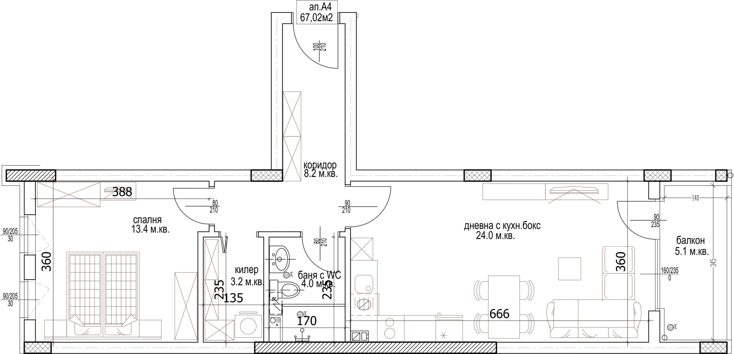 Апартамент, Двустаен А - 4