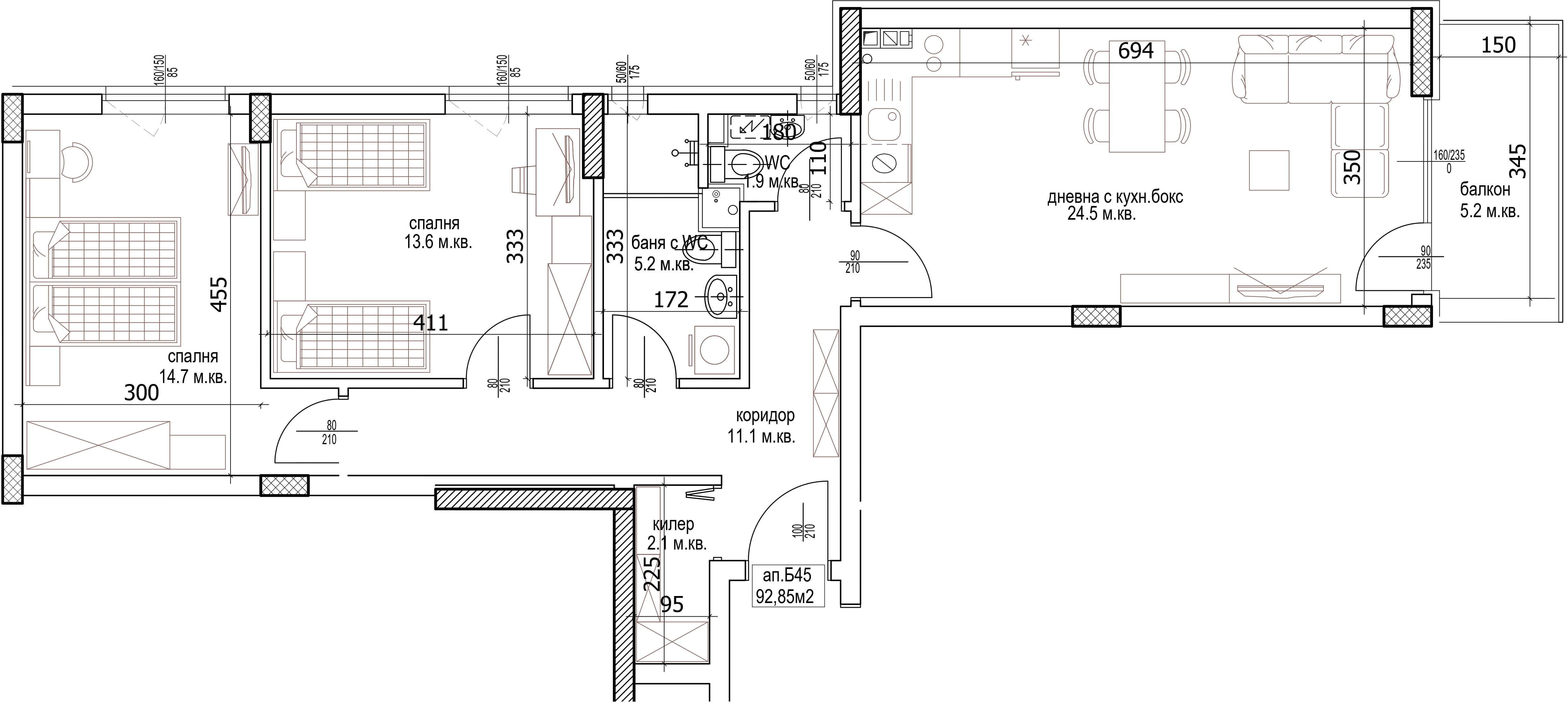 Чиста площ 92.85 м2