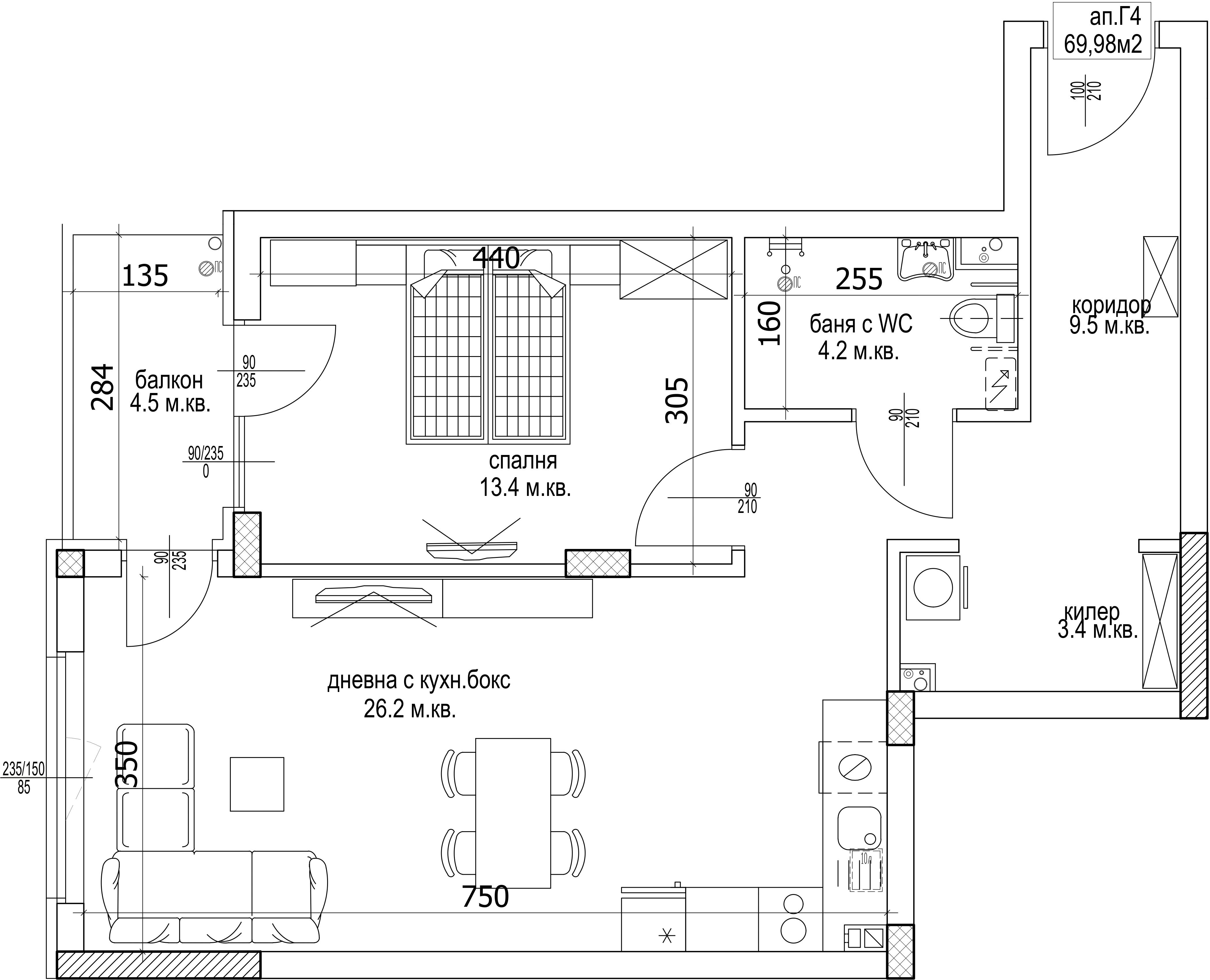 Апартамент, Двустаен Г - 4
